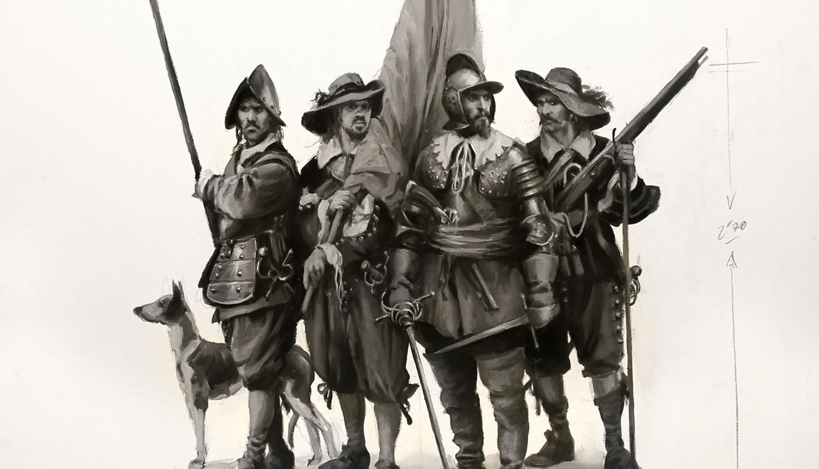 Boceto de Los Tercios, obra del pintor de batallas Augusto Ferrer-Dalmau |